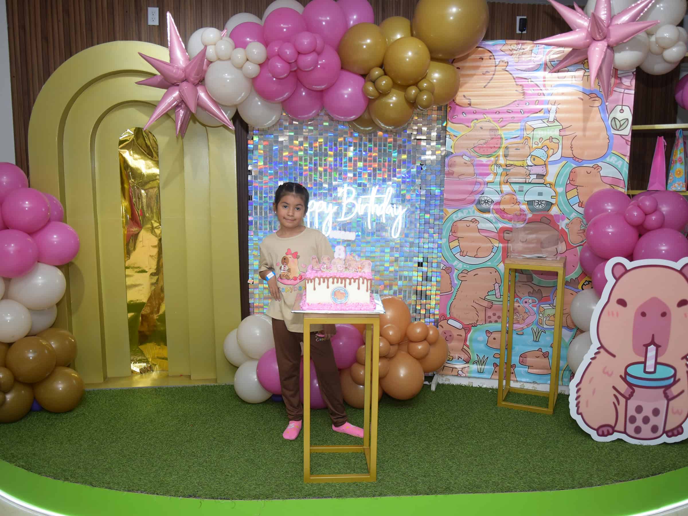 La celebración se centró en la temática del capibara, lo que hizo que la fiesta fuera aún más especial para la cumpleañera. Los detalles decorativos y el pastel fueron cuidadosamente elegidos para reflejar su amor por la serie animada.