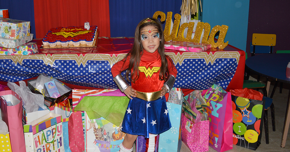 En esta ocasión el salón estuvo adornado con la temática de “La Mujer Maravilla”, personaje preferido de la linda cumpleañera, quien recibió a sus invitados vestida con un hermoso disfraz.