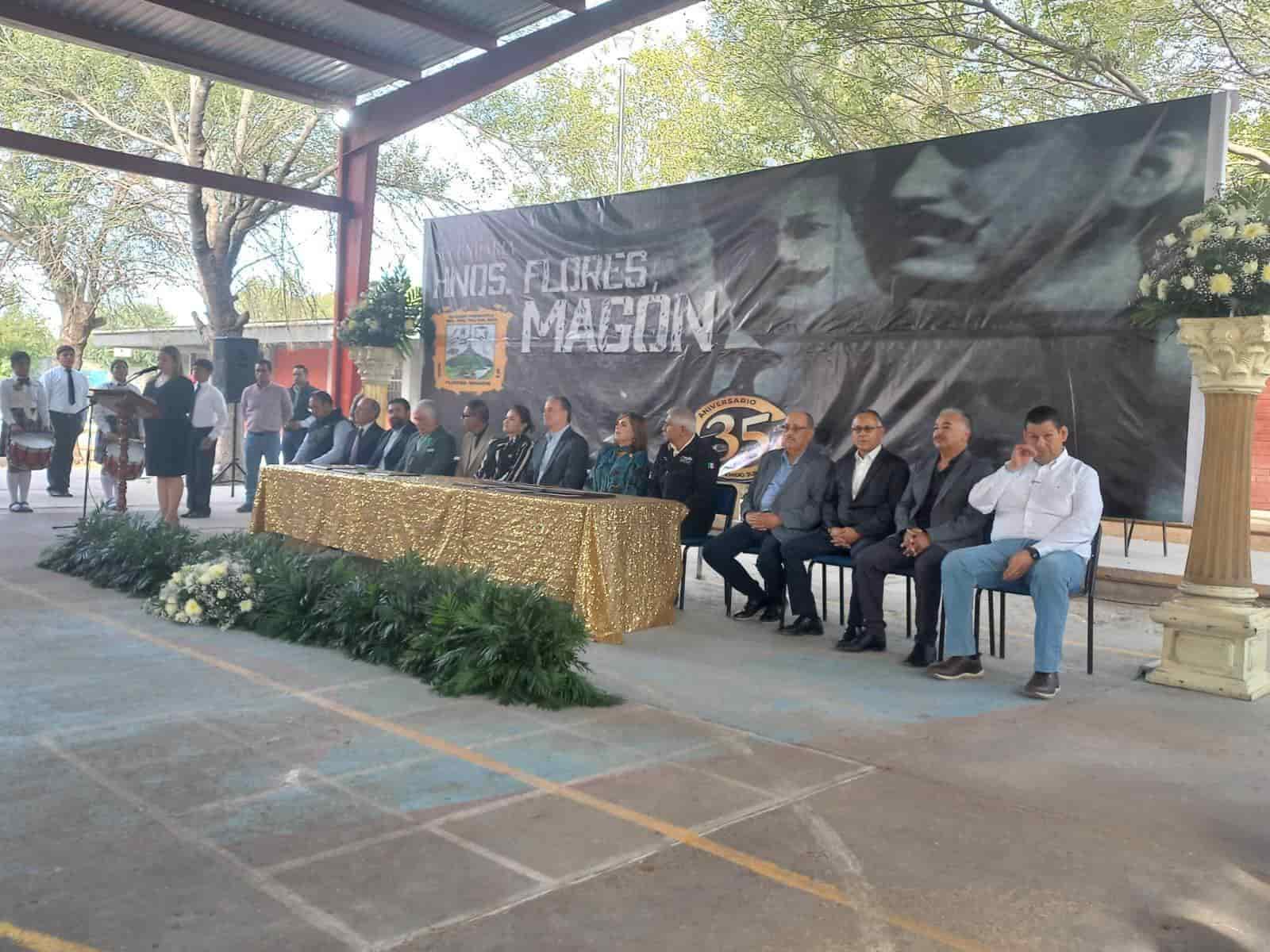 Ciudad Acuña, Coah.- La escuela secundaria Hermanos Flores Magón celebró el aniversario número 35 de su creación, misma que inció con el objetivo de impartir educación en todo el municipio.