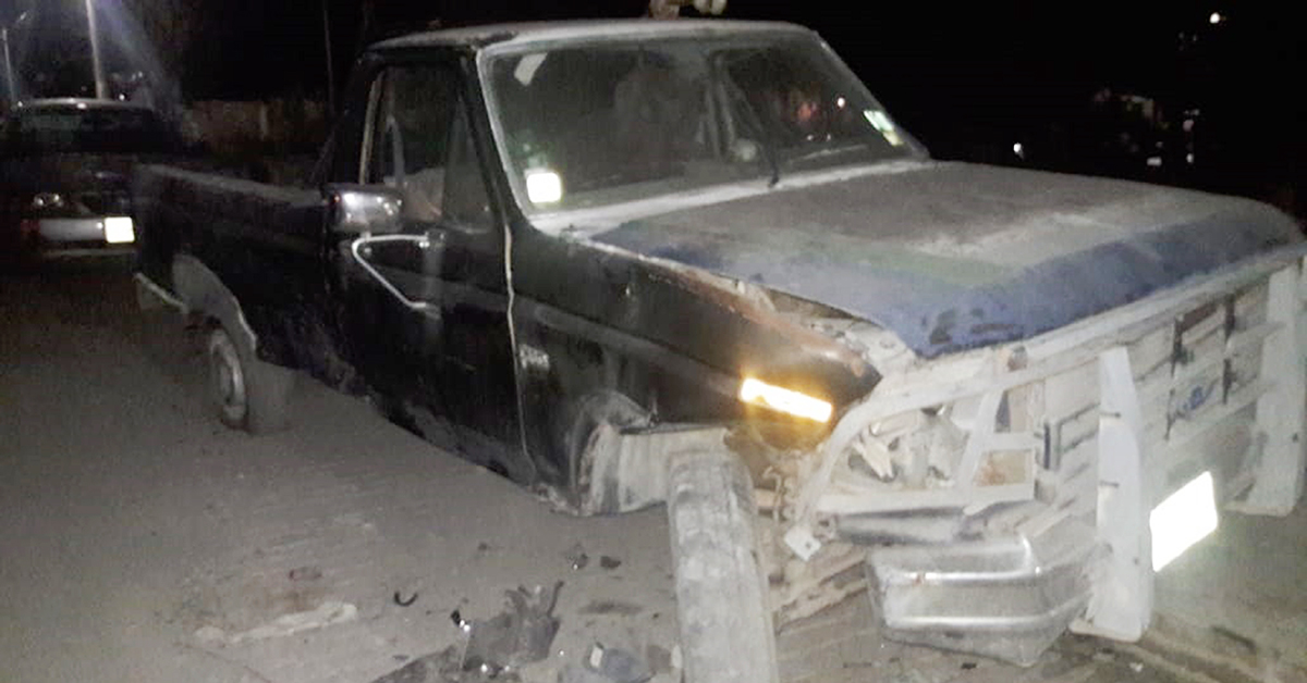 Al llegar a la calle Álvaro Obregón no hizo su alto correspondiente, lo que provoca impactar una camioneta Ford F150 en color negro modelo 1984.