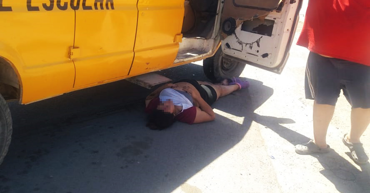 Fueron atropelladas por un transporte escolar qué trasladaba a varios adolescentes de una institución educativa dos mujeres qué intentaban cruzar el libramiento Surponiente, a la altura de la placita del fraccionamiento Santa Rosa.