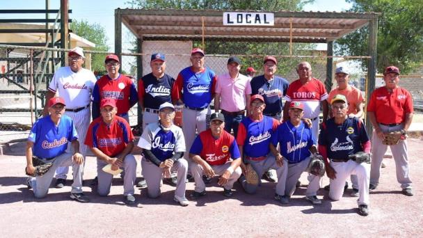 San Buenaventura, Coahuila.- El joven al alcalde Hugo Iván Lozano Sánchez disfrutó de un  juego amistoso que terminó en emotivo convivio de  dos equipos de sóftbol de  70 y más.