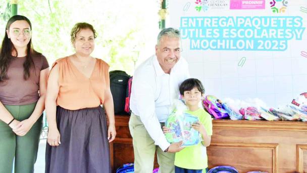 "Agradezco la participación de la Lic. Lucía Herrera, delegada regional de PRONNIF, quien se sumó a esta entrega. Además, Juan Leija donó las mochilas, fortaleciendo el compromiso de la comunidad con la educación", expresó el edil.