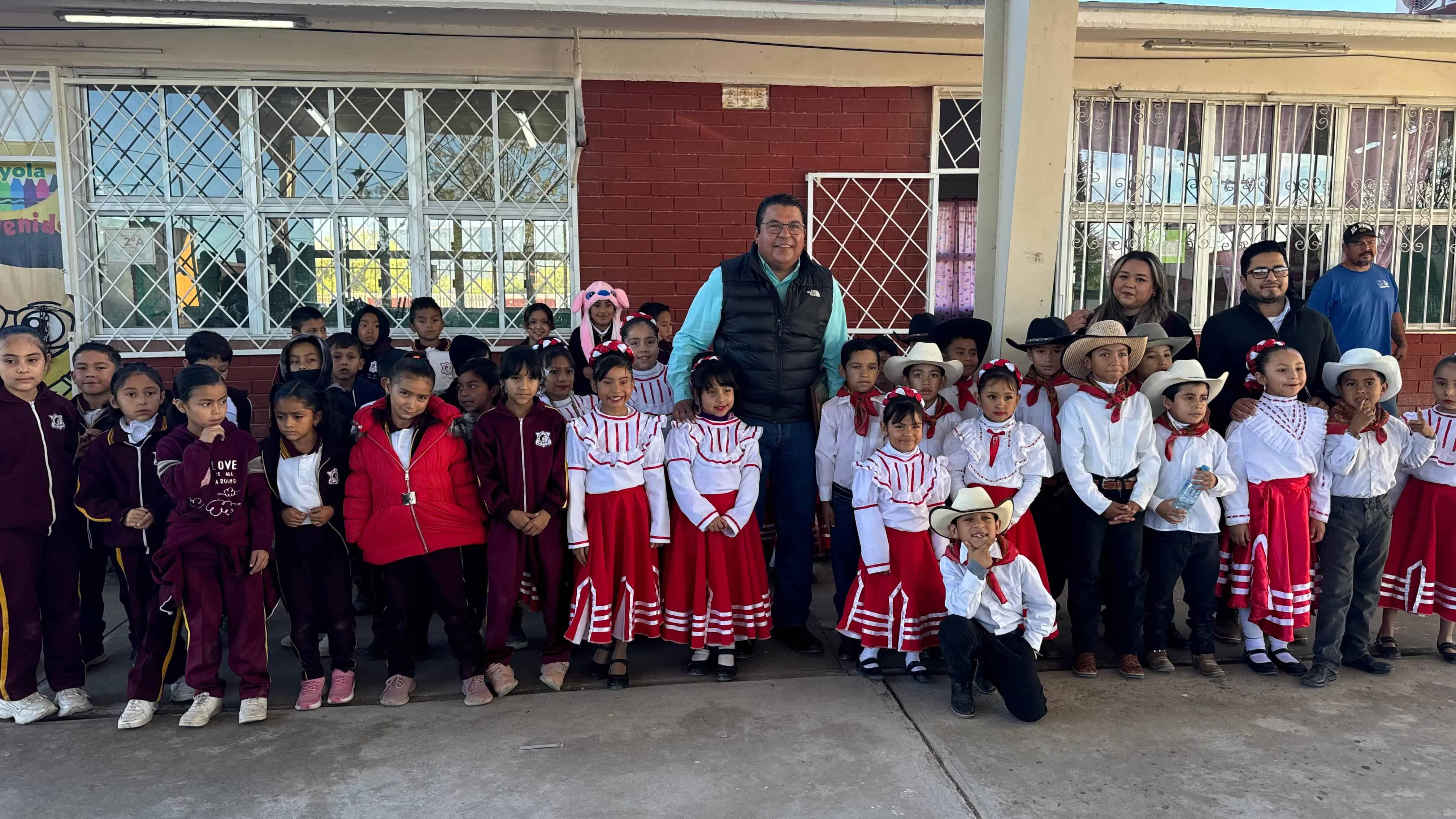 FRONTERA COAH.- Alumnos de la Escuela Primaria Diana Laura Riojas de Colosio, en Frontera, llevaron a cabo un emotivo homenaje al alcalde Roberto Piña, como muestra de agradecimiento por el apoyo que ha brindado para mejorar la imagen del plantel. Este evento, aunque pequeño, fue altamente significativo para la comunidad escolar.
