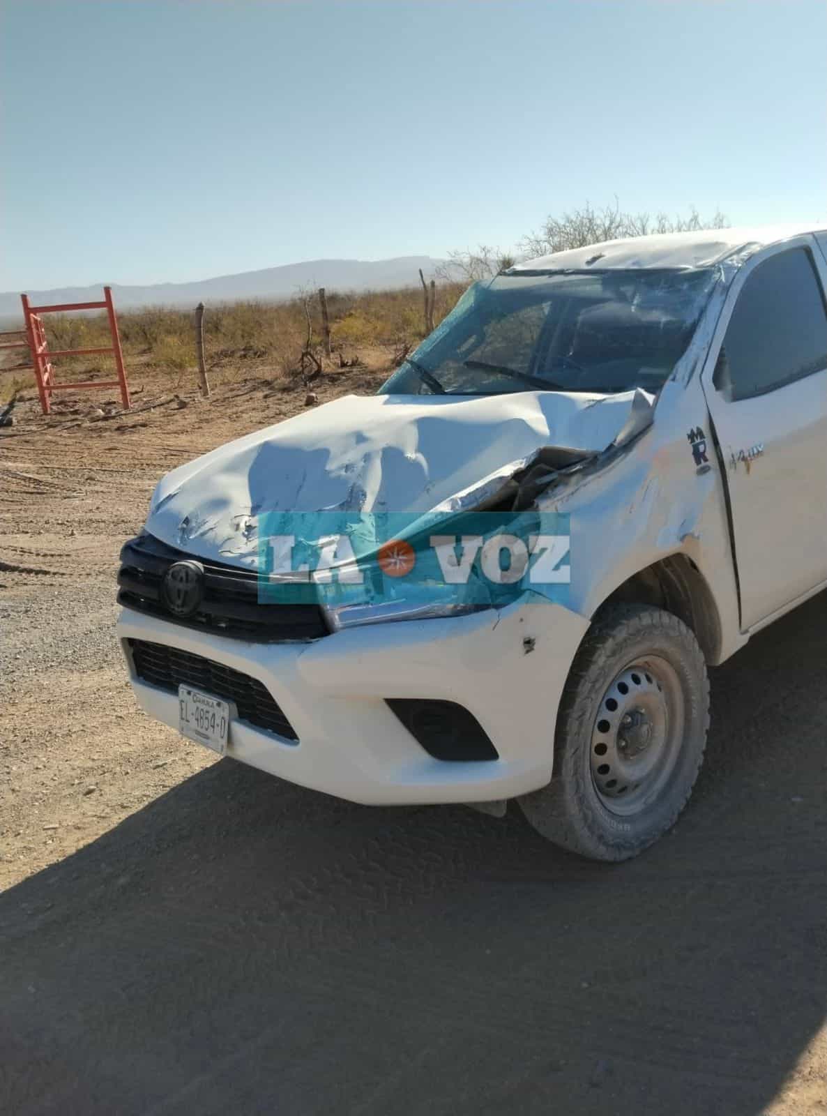 Elementos de la Policía Civil de Coahuila (PCC) acudieron al sitio tras recibir el reporte del accidente. Al llegar, encontraron una camioneta Toyota Hillux volcada sobre uno de sus costados, con placas de circulación EL-4854-D, perteneciente a una empresa reconocida de la localidad con las iniciales (MR).