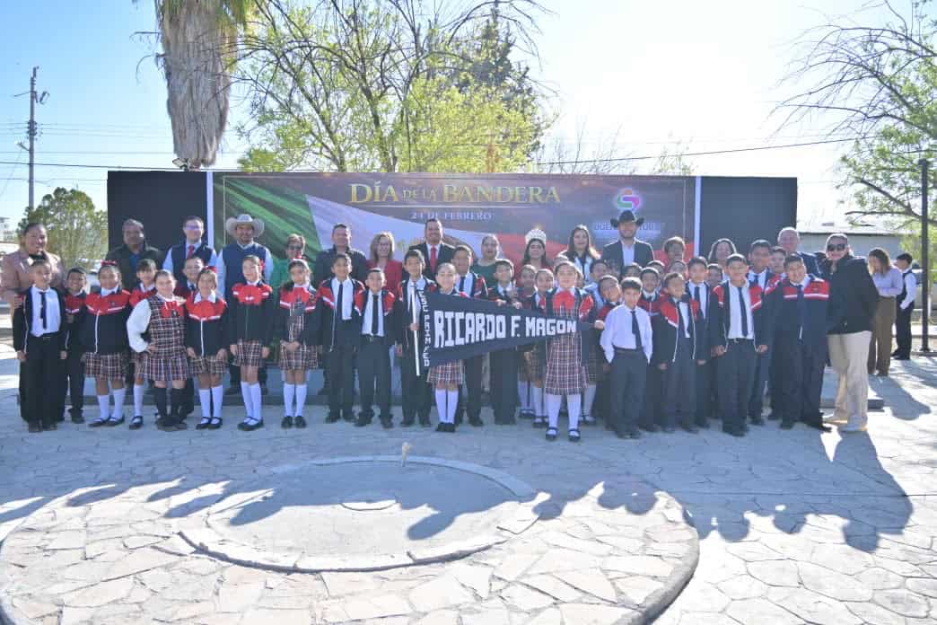 San Buenaventura, Coah.– Con gran orgullo y sentido cívico, el alcalde Javier Flores Rodríguez, acompañado por el cuerpo edilicio, autoridades educativas y representantes de la sociedad civil, encabezó la ceremonia conmemorativa del Día de la Bandera, realizada en la Plaza Prudencio Garza.
