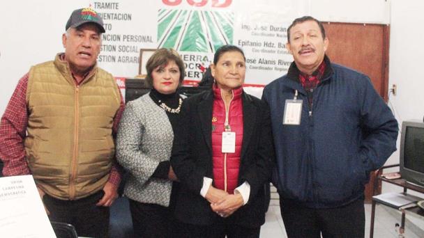La dirigente estatal María de Jesús Aguilar Alfaro, el coordinador de proyectos productivos Jaime Muza así como el coordinador regional José Alanís ofrecieron una rueda de prensa para dar a conocer las sentencias que emitió la Suprema Corte de Justicia expulsando a Tirado Patiño de esta organización.