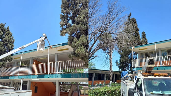 Frontera: Reparan luminarias en escuelas