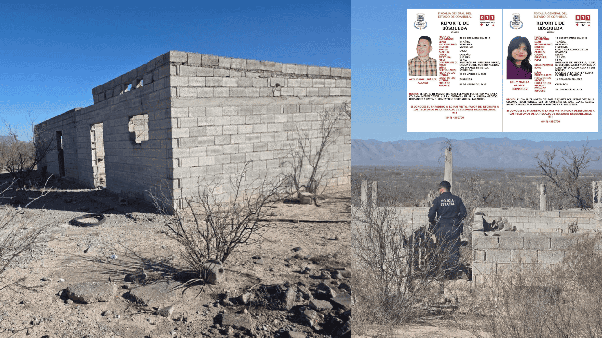 CASTAÑOS, COAH.– La búsqueda de los menores reportados como desaparecidos en el municipio de Castaños se intensificó la tarde de este viernes, luego de que diferentes corporaciones de seguridad desplegaran un operativo por brechas y caminos que conducen al parque Santa Cecilia, mejor conocido por la población como "Las Pompas".