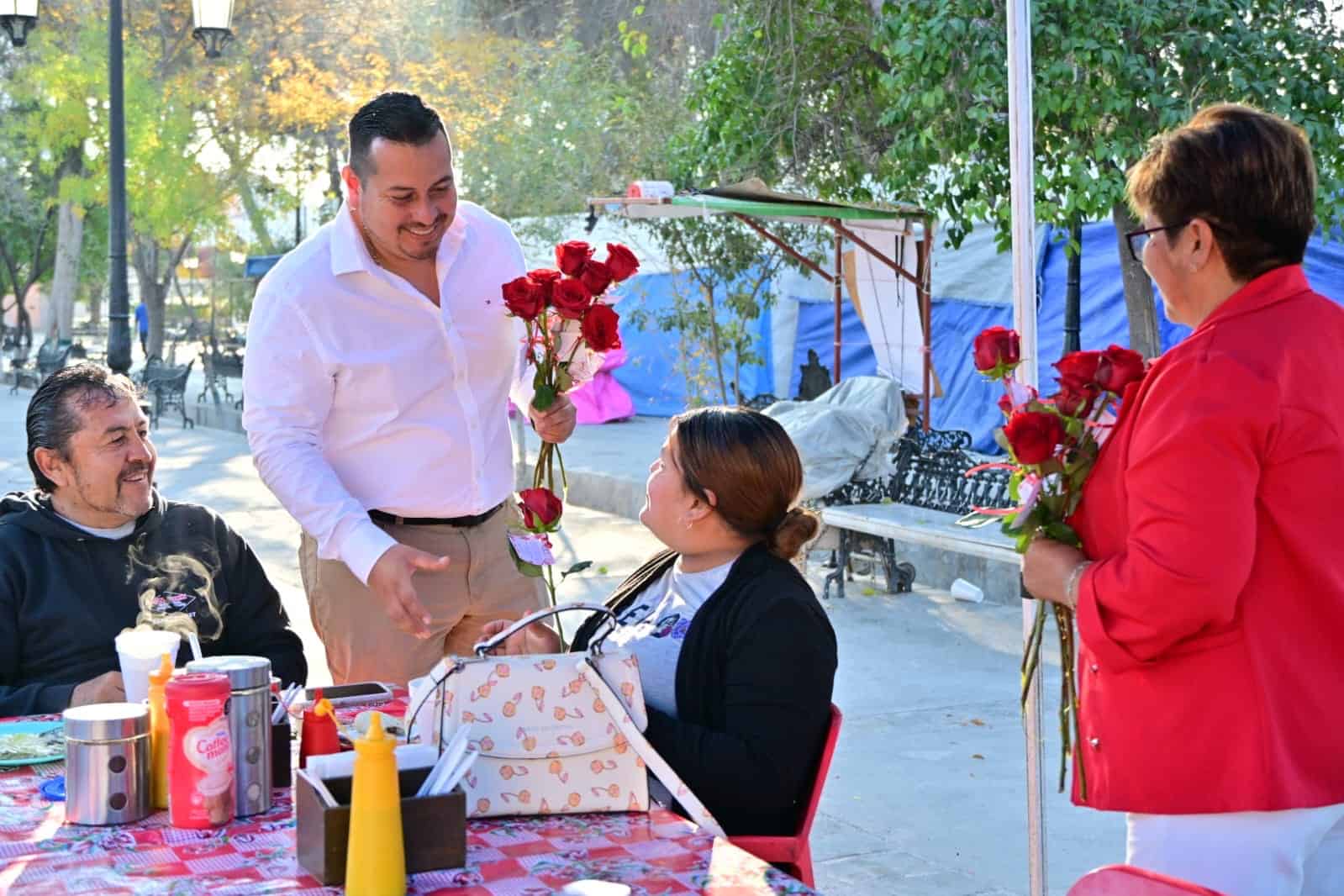 SAN BUENAVENTURA, COAHUILA.- San Buenaventura vivió una mañana llena de alegría y cercanía este viernes, cuando el alcalde Javier Flores Rodríguez recorrió la Plaza Principal de San Buenaventura para regalar flores y chocolates a las y los ciudadanos, con motivo del Día del Amor y la Amistad.