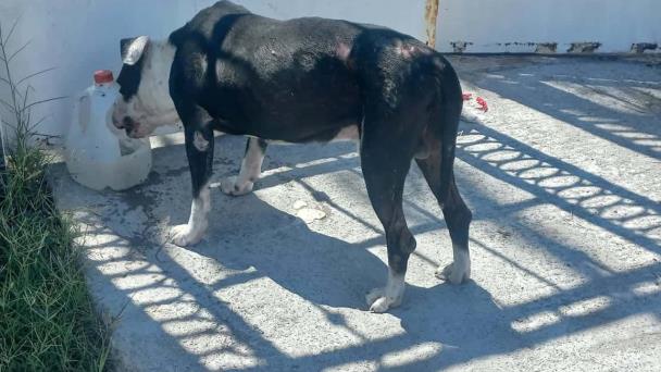 FRONTERA, COAHUILA.- La Dirección de Protección Animal de Frontera rescató esta mañana a un perro de raza pitbull que fue encontrado amarrado con sedal y envuelto en bolsas negras de basura en la colonia Borja, justo frente a la escuela primaria Margarita Maza de Juárez.