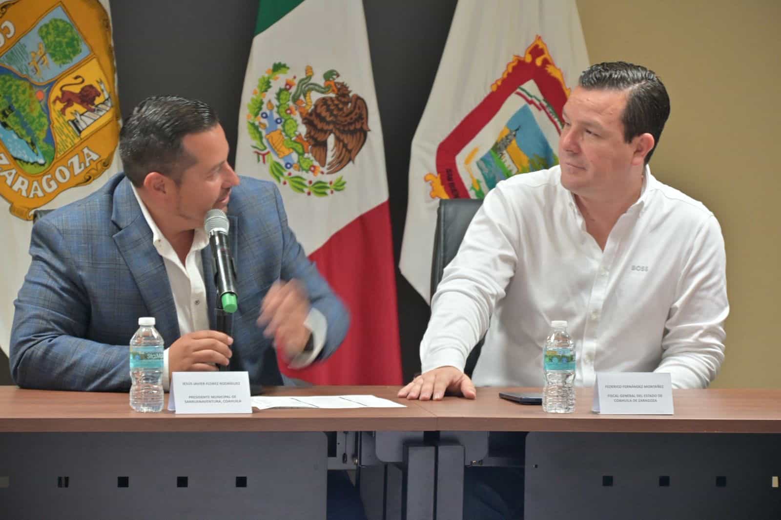 SAN BUENAVENTURA, COAHUILA.– El Fiscal General del Estado de Coahuila Federico Fernández Montañez y el alcalde Jesús Javier Flores Rodríguez encabezaron la reunión semanal de seguridad realizada en la Sala de Cabildo de la Presidencia Municipal, donde se contó con la presencia de los distintos niveles de gobierno encargadas de la seguridad pública.