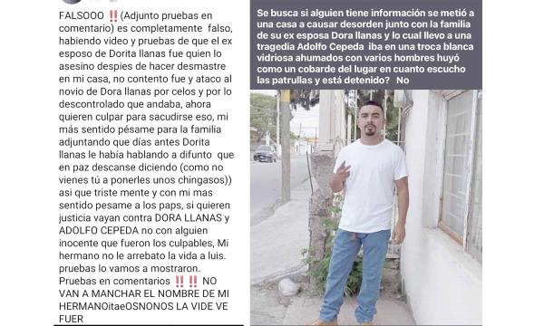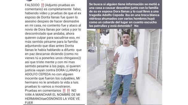 “Es completamente falso, hay videos y pruebas de que el ex esposo de Dorita Llanas fue quien lo asesinó, después de hacer desmadre en mi casa. No contento fue y atacó al novio de Dora Llanas por celos y por lo descontrolado que andaba. Ahora quieren culpar para sacudirse eso”, escribió.