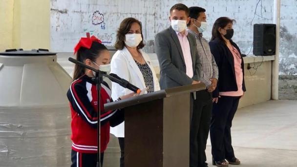 Alumnos de la escuela Zaragoza dieron palabras de gratitud al alcalde por la pronta respuesta a la gestión y mencionaron que con los tinacos podrán hacer actividades de reforestación en cuidado de su querida primaria.
