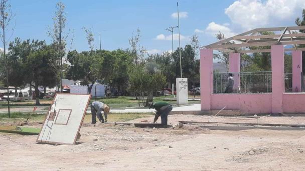 FRONTERA COAH-. Continúan los trabajos de remodelación en la plaza de la colonia Occidental, lo que representa un peligro latente para los ciudadanos que no respetan el área delimitada, por ello Roberto del Bosque; director de Obras Públicas exhortó a la población a tomar precauciones.