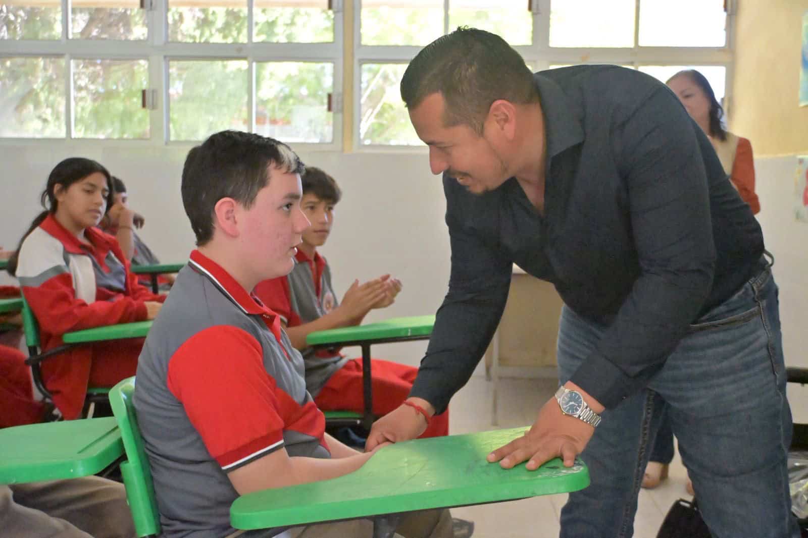 En su visita al plantel, el alcalde recorrió algunas áreas y entró a un aula donde saludó a los alumnos, a quienes explicó que la silla de ruedas permanecerá en Prefectura o en la Dirección, para que pueda utilizarse de manera inmediata en caso de que algún estudiante o integrante de la comunidad escolar la requiera dentro de la escuela.