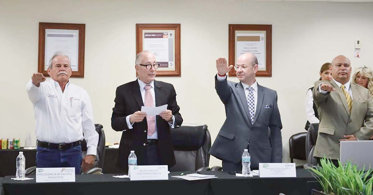 FRONTERA, COAH.- Con el Alcalde de Frontera, Florencio Siller Linaje como miembro y testigo, se firmó y tomó protesta al Consejo de Vinculación y Pertinencia de la Universidad Tecnológica de la Región Centro de Coahuila.
