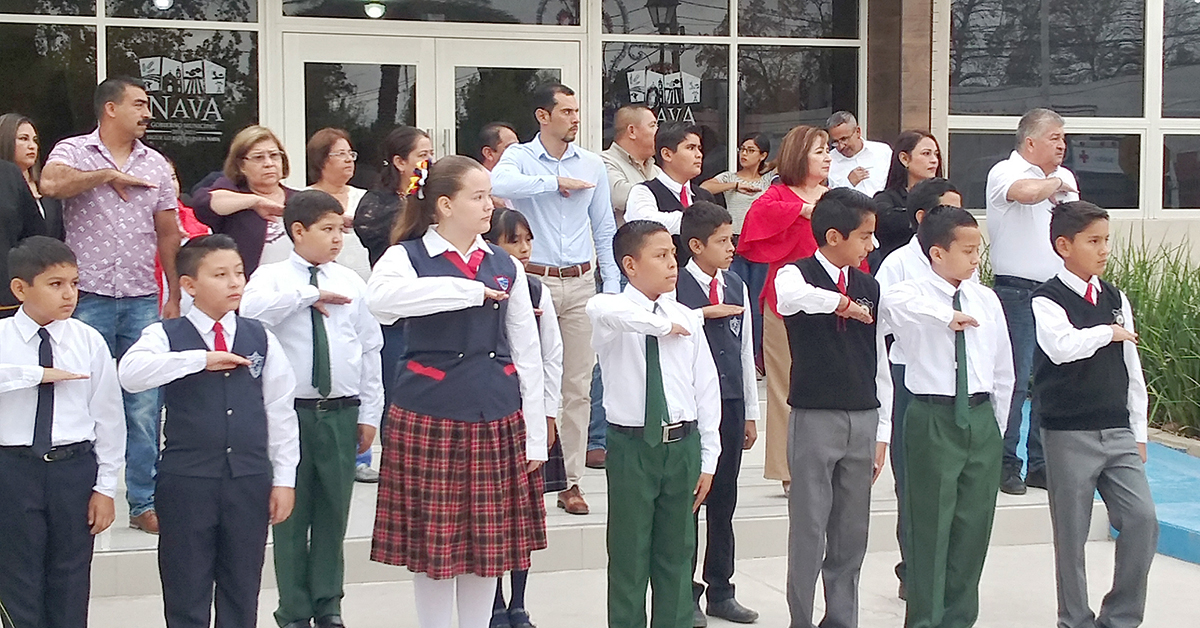 NAVA, COAH. - A cargo de los alumnos de la Escuela Primaria Venustiano Carranza en presencia del alcalde Sergio Zenón Velázquez Vázquez y directores de área, se llevó a cabo en la explanada de la presidencia municipal una ceremonia cívica y saludo a la bandera, tras conmemorarse un aniversario más de la Organización de las Naciones Unidas enviando un mensaje de paz a todos los presentes.