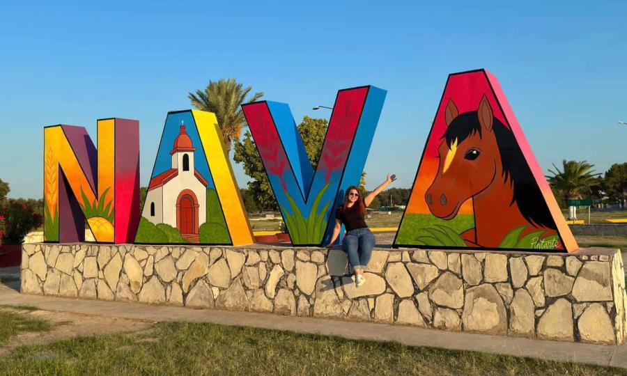 Nava, Coah. – Las letras monumentales en la entrada de Nava lucen ahora un diseño renovado gracias al trabajo de la pintora Airam A. Salomón Garza, quien plasmó en esta obra la esencia y las tradiciones que definen a la comunidad navense.