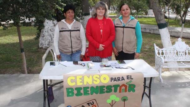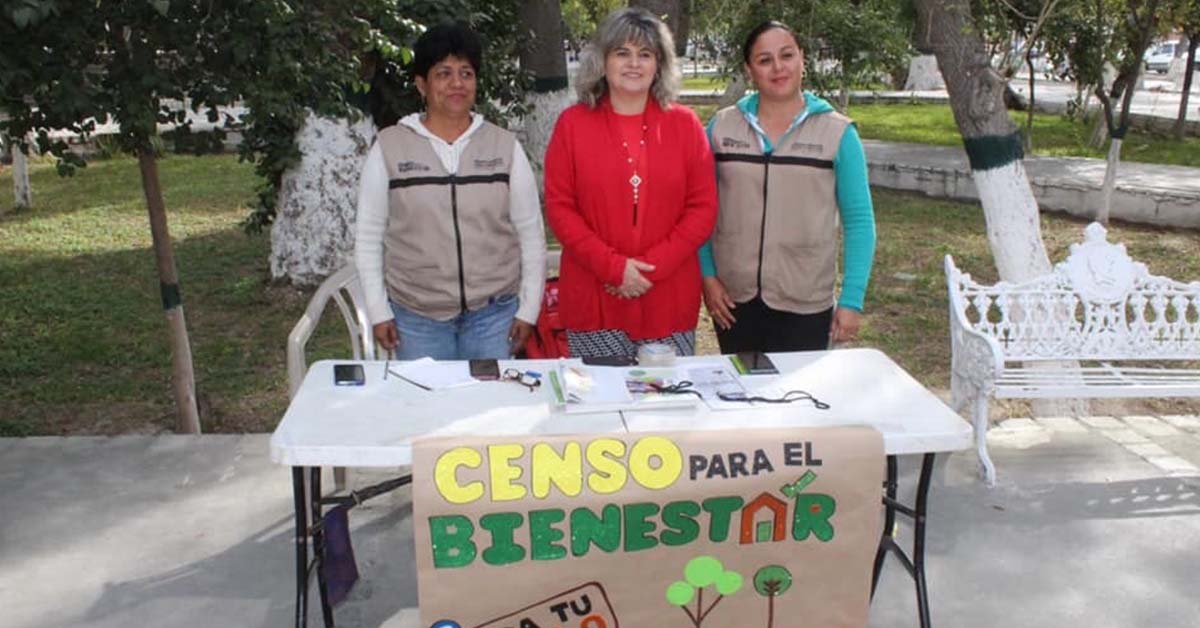 San Buenaventura, Coahuila.- Personal de los servidores de la nación instalaron un módulo de censo para el bienestar del gobierno federal en la plaza principal frente a presidencia de San Buenaventura.