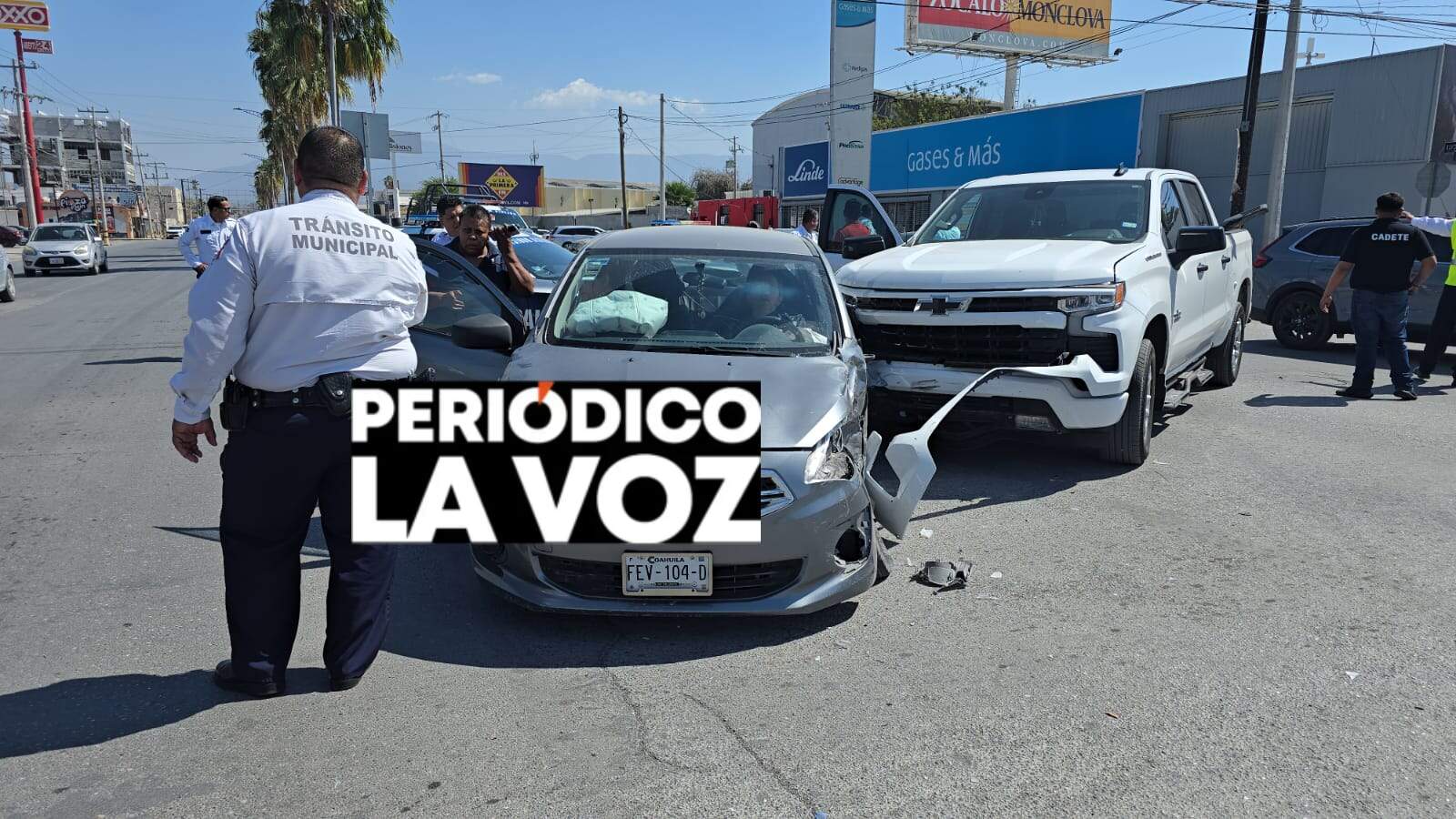Monclova, Coah.— Ignorar la luz roja de un semáforo bastó para desatar un fuerte accidente vial que movilizó a corporaciones de rescate la tarde del sábado en el cruce de los bulevares Benito Juárez y Tecnológico, dejando como saldo una mujer lesionada y cuantiosos daños materiales.