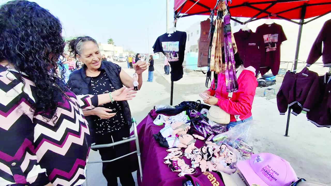 Cuatro puestos de venta de artículos alusivos a la presidenta Claudia Sheinbaum fueron instalados en el sector Colinas de Santiago, durante la visita de la mandataria a Monclova con motivo de la entrega de las Viviendas del Bienestar.