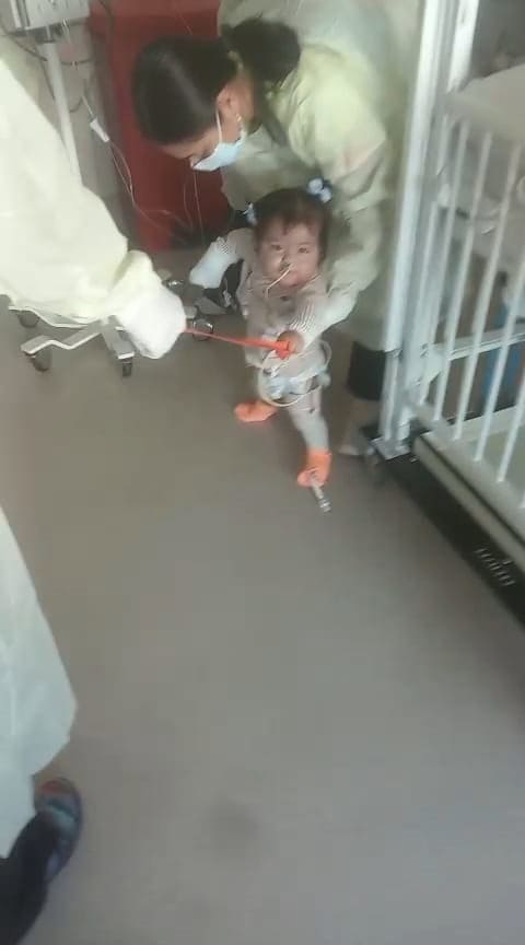 Mónica Abigail compartió videos en los que se observa a la pequeña Margarita dando sus primeros pasos, apoyada con personal de enfermería de la clínica, y jugando, en donde se ha ganado el cariño del personal del hospital.