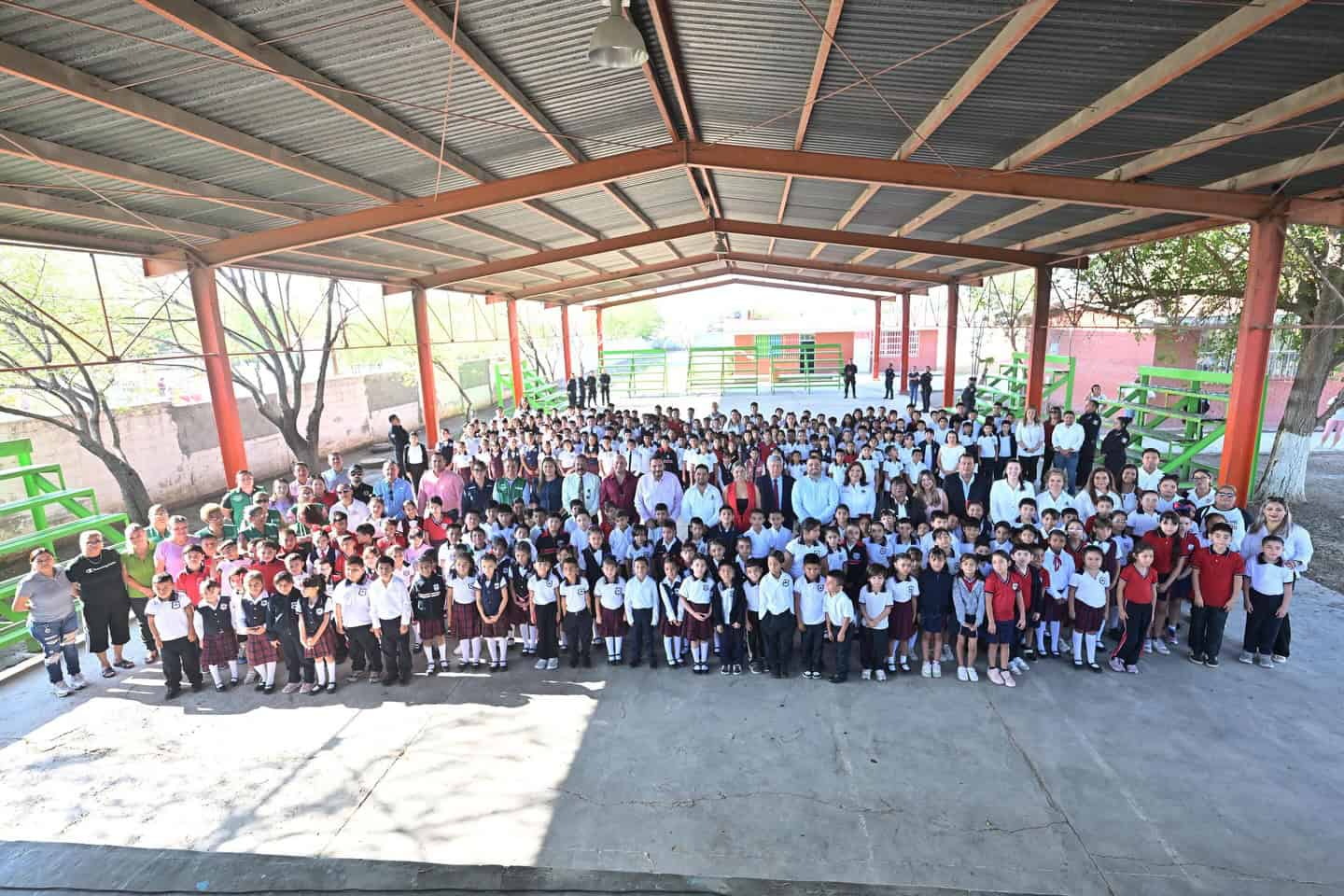 El alcalde Carlos Villarreal Pérez encabezó el lunes cívico en la escuela Monclova 400, ubicada en la colonia Praderas del Sur, donde convivió con alumnos, docentes y padres de familia en una ceremonia dedicada a fortalecer los valores cívicos.