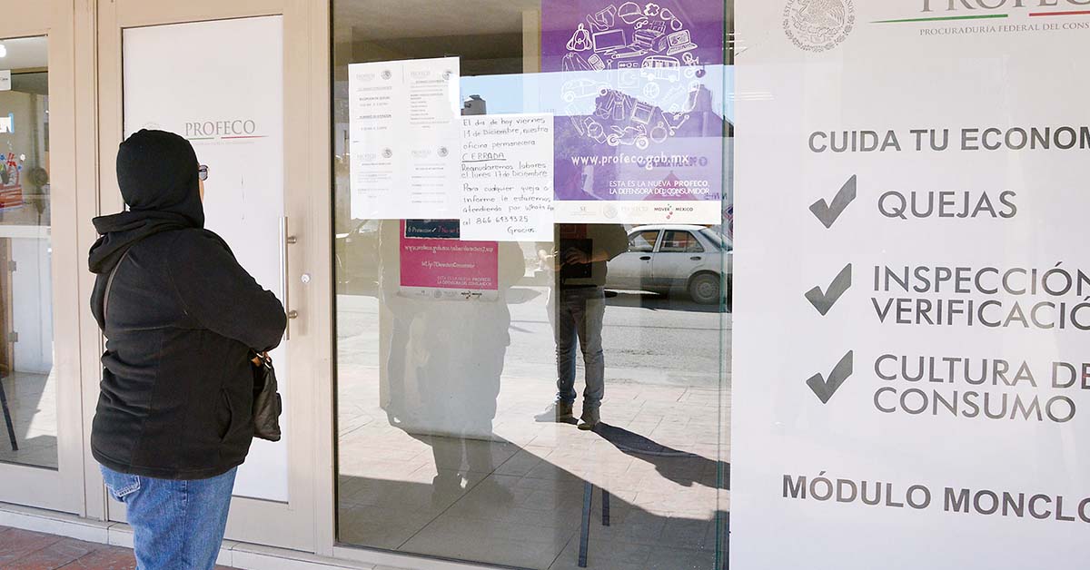 Incluso en la puerta dela oficina hay un letrero que señala que ante cualquier queja o algún informe se estará atendiendo a la ciudadanía a través de whatsapp en el número 866 643 43 25 ya que lo principal es defender los derechos de los consumidores y evitar que empresas, negocios y prestadores de servicio abusen de la ciudadanía que en esta temporada realizan sus compras.