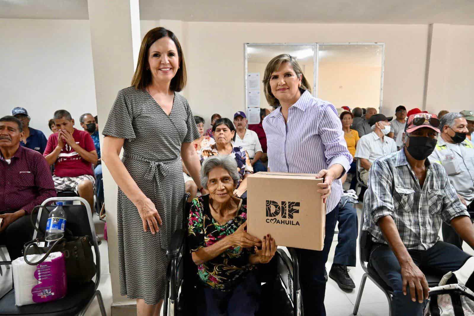 En una acción conjunta con el DIF Estatal que encabeza la primera dama del Estado, Marcela Gorgón, la presidenta honoraria de DIF Monclova doctora Leticia Carrillo hizo entrega de despensas a adultos mayores y personas con discapacidad.