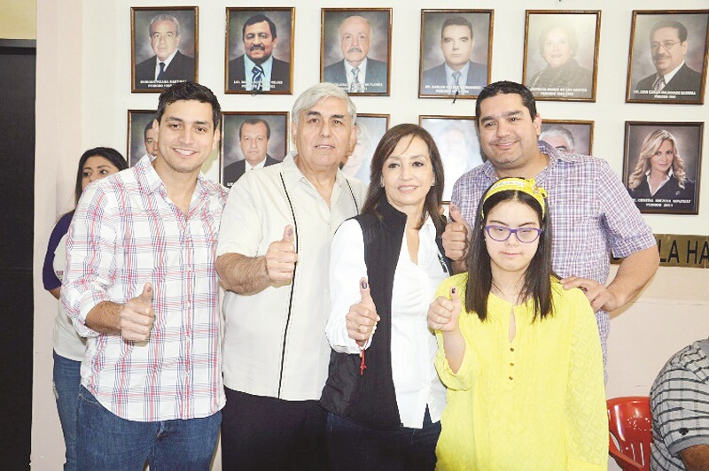 Fue antes del mediodía cuando Guadalupe Oyervides arribó al PRI acompañada de su familia, para emitir todos el voto con el que le dieron el respaldo a Miguel Riquelme para ser el contendiente a la gubernatura.
