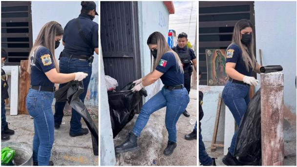 Sin importarle ensuciar su uniforme ni su imagen impecable, esta agente entró en acción, ayudando en la limpieza del lugar, brindando consuelo al adulto mayor, y participando activamente en las labores de asistencia. Su entrega no pasó desapercibida: vecinos, compañeros y testigos coincidieron en que no solo fue admirable su apariencia, sino su disposición a actuar con el corazón.