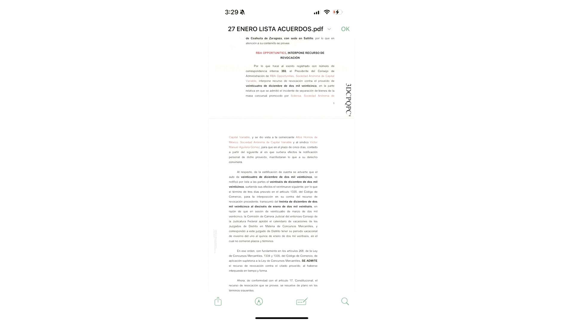 RBA Opportunities pierde recurso en incidente de Solensa S.A. de C.V.