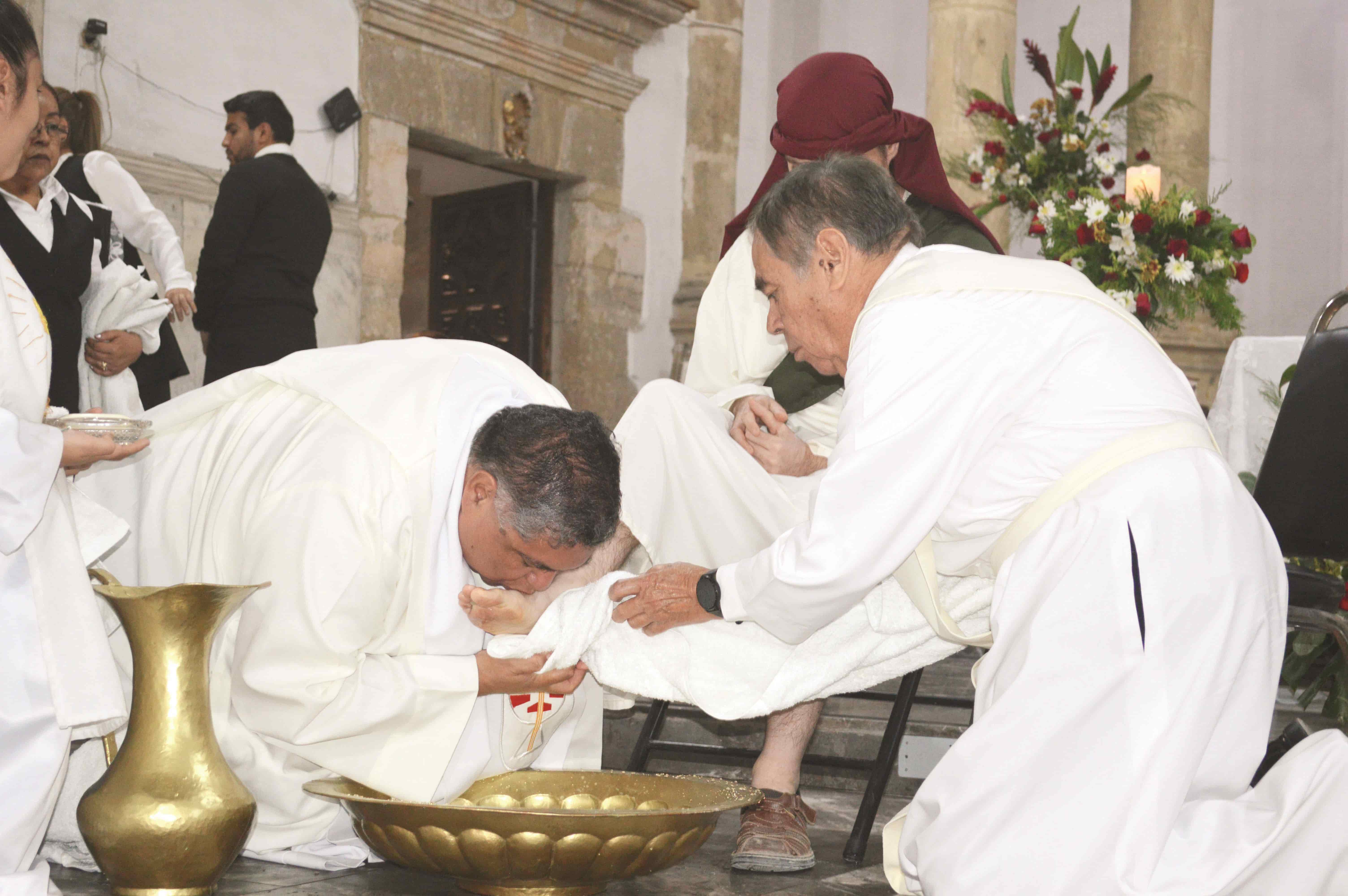 Decenas de fieles católicos presenciaron la recreación del Lavatorio de Pies en la parroquia Santiago Apóstol, donde el Padre Eduardo Neri representó el gesto que Jesús tuvo con sus apóstoles antes de ser aprehendido.