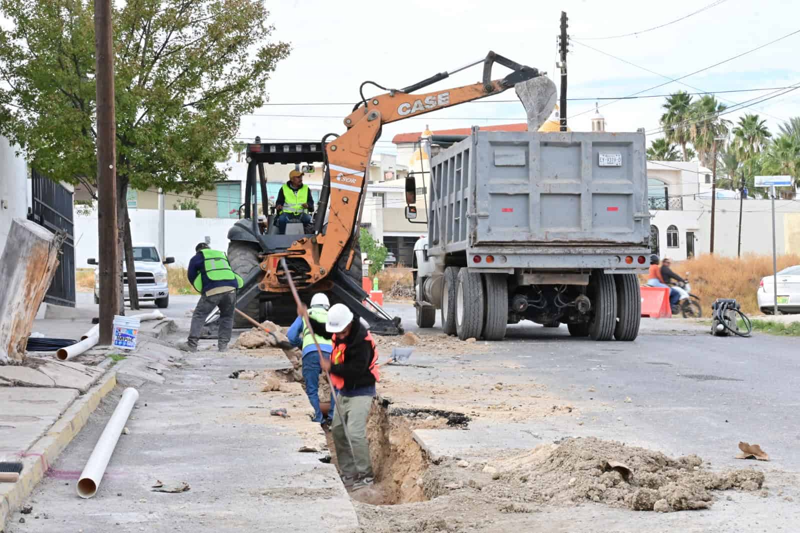 La obra se realizó en la calle Frontera, en el tramo comprendido entre el bulevar Pape y la calle Valparaíso, donde se sustituyeron 504 metros lineales de tubería de PVC hidráulico de cuatro pulgadas de diámetro, con el objetivo de mejorar el abasto y reducir fugas en la zona.