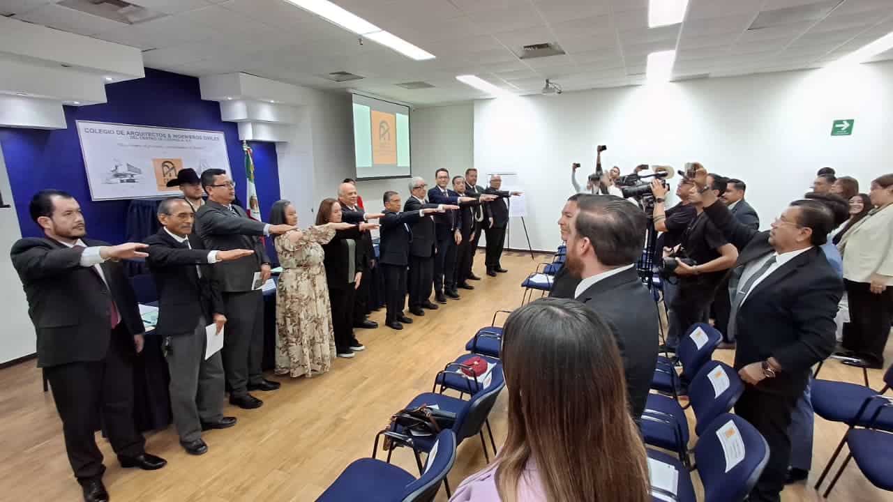 Con el objetivo de fortalecer la práctica profesional y contribuir al desarrollo ordenado de la infraestructura, se llevó a cabo la toma de protesta del Colegio de Arquitectos e Ingenieros del Centro de Coahuila A.C., acto encabezado por el alcalde Carlos Villarreal Pérez en las instalaciones de la Canacintra.