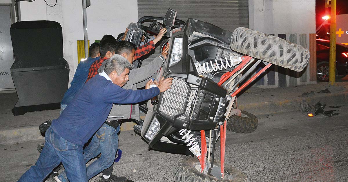 Por segunda ocasión en menos de una semana, un vehículo todo terreno de los denominados Razor, participó en un fuerte accidente vehicular la noche de ayer, dejando como resultado cinco personas lesionadas y una unidad volcada en plena Zona Centro de Monclova.