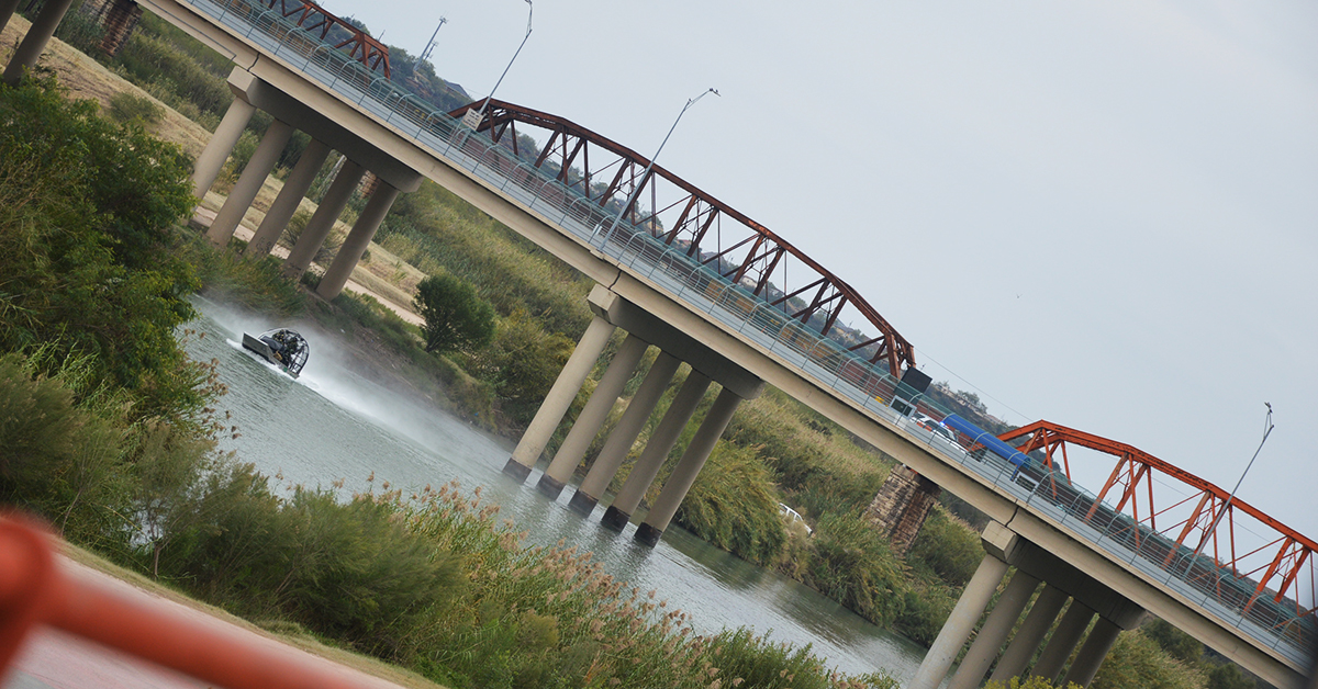 Eagle Pass, Texas- Personal del Departamento de Transporte de Texas, inspeccionan los pilares y la estructura de Puentes Internacionales que unen a esta ciudad con Piedras Negras.