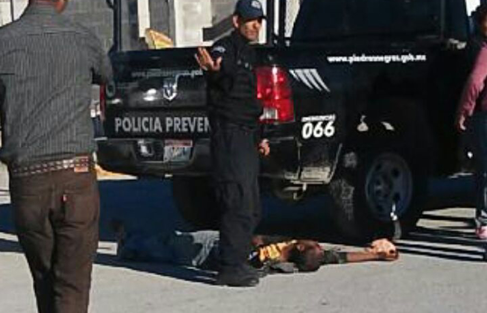 Este último se arrojó de la unidad en movimiento, por el que el uniformado se regresó de reversa aplastando a José Ángel.