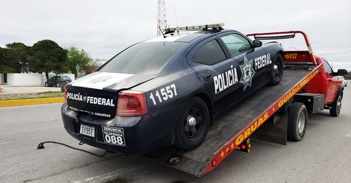 Fue necesario solicitar una grúa para proceder a remolcar la patrulla para ser llevada a la base de la Policía Federal y posteriormente a un taller mecánico.