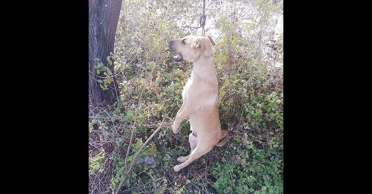 MELCHOR MÚZQUIZ, COAH.- Un perro fue ‘ejecutado’ cruelmente en un predio baldío en el callejón de los Novillos en la Colonia Azteca, donde lo ataron a un mecate y lo colgaron de un árbol hasta que murió.