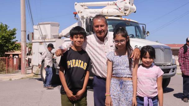 NUEVA ROSITA, COAHUILA.- El alcalde de San Juan de Sabinas, Oscar Ríos Ramírez, continúa recorriendo las colonias de Nueva Rosita para supervisar los trabajos de instalación de luminarias LED, una acción que forma parte del compromiso de su administración por mejorar la seguridad, la imagen urbana y la calidad de los servicios públicos.