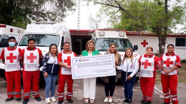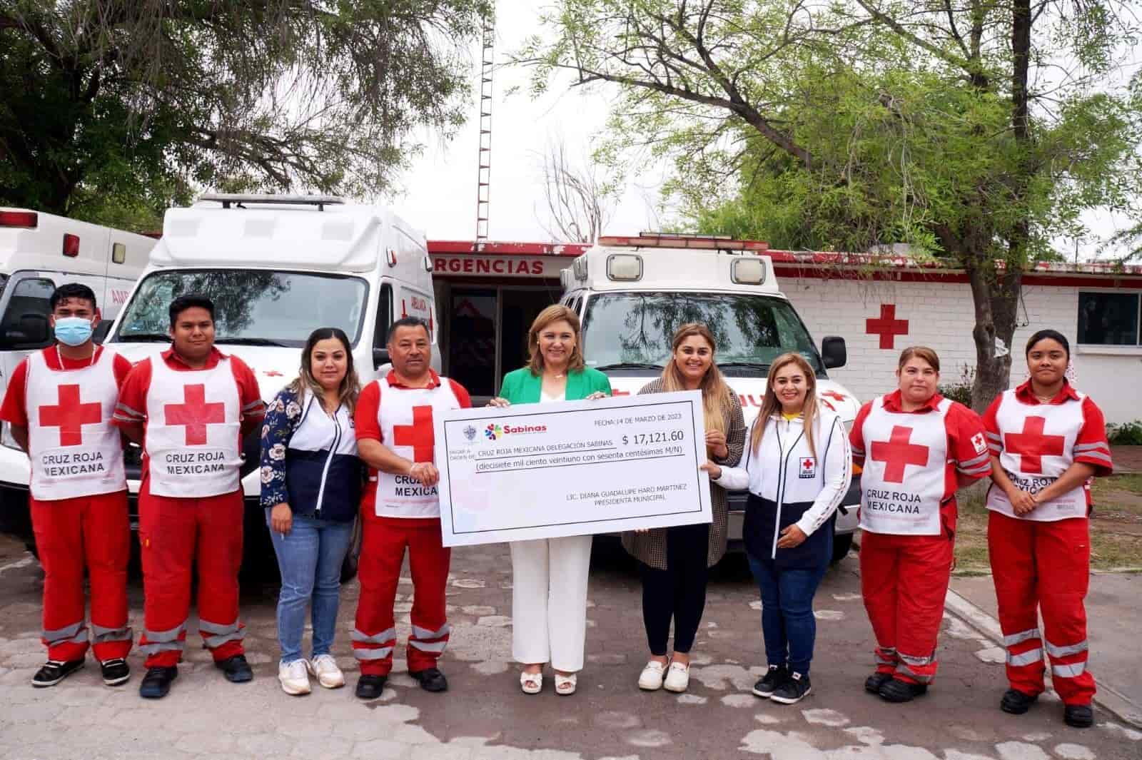 Sabinas, Coahuila.- La suma de 17 mil 121.60 pesos fue entregada la mañana de este martes a la Cruz Roja delegación Sabinas, por parte de la alcaldesa Diana Haro Martínez, ante la urgente necesidad de adquirir llantas para las ambulancias a fin de que atiendan cada uno de los llamados que se les hace en situaciones de accidentes, contingencias y traslados a esta benemérita institución.