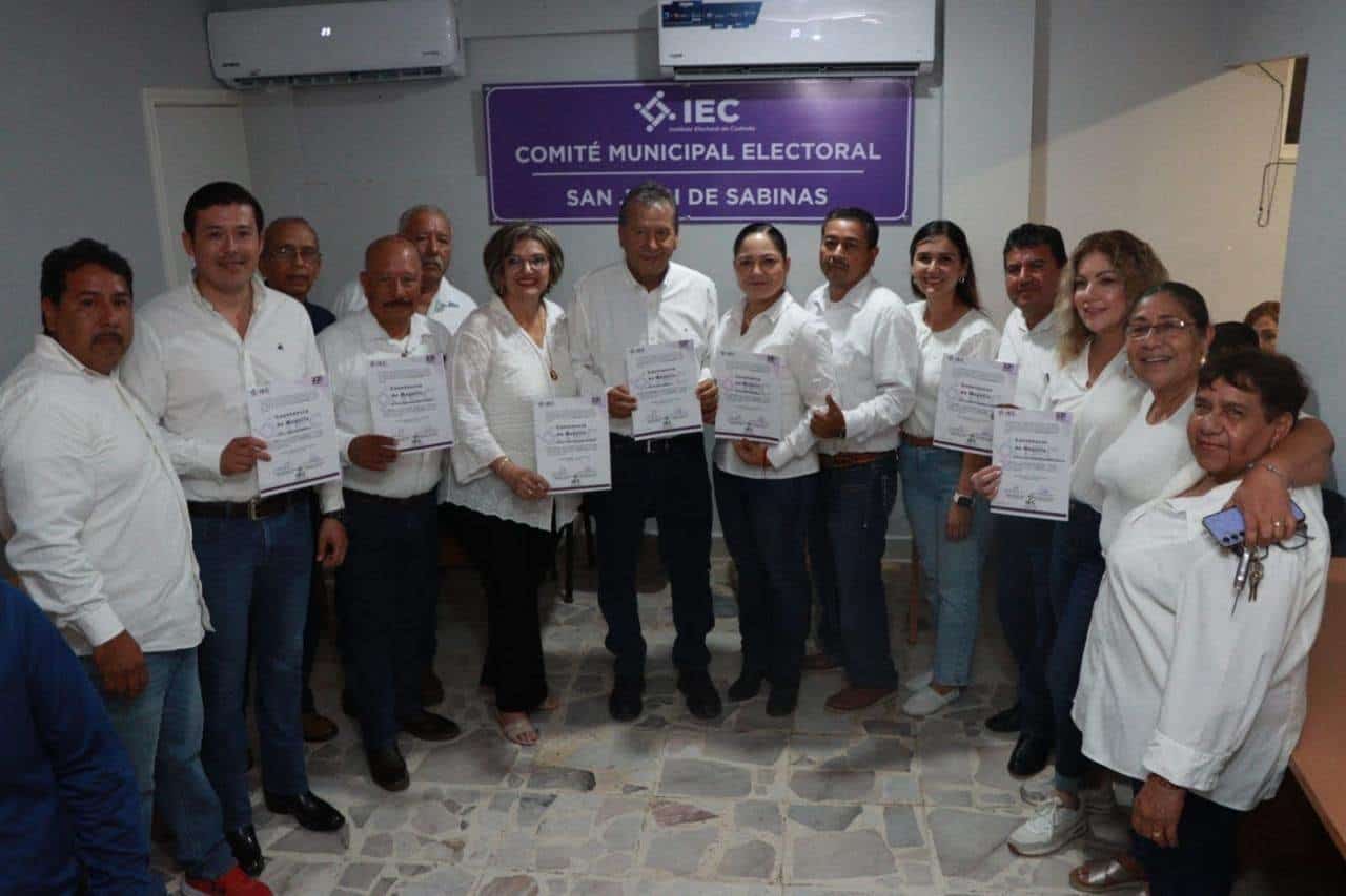 NUEVA ROSITA, COAH.- Luego de entregar la constancia de mayoría y validez al ciudadano Oscar Ríos Ramírez como alcalde electo del Municipio de San Juan de Sabinas, también se realizó la entrega de documentación a quienes fungirán como síndicos y regidores en la administración municipal 2025-2027.