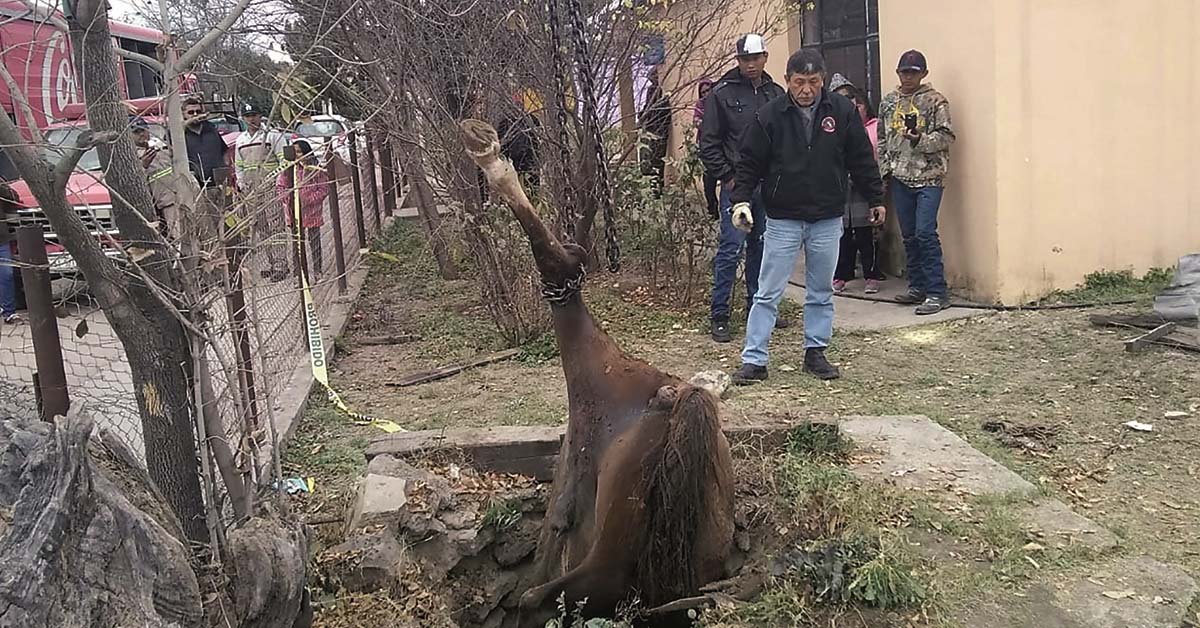 MINERAL DE PALAÚ, COAH.- Luego de una intensa jornada de rescate que se extendió por más de cinco horas, se logró rescatar el cuerpo de un caballo que cayó a una noria de más de 15 metros de profundidad ubicada en un domicilio del ejido “La Cuchilla”.