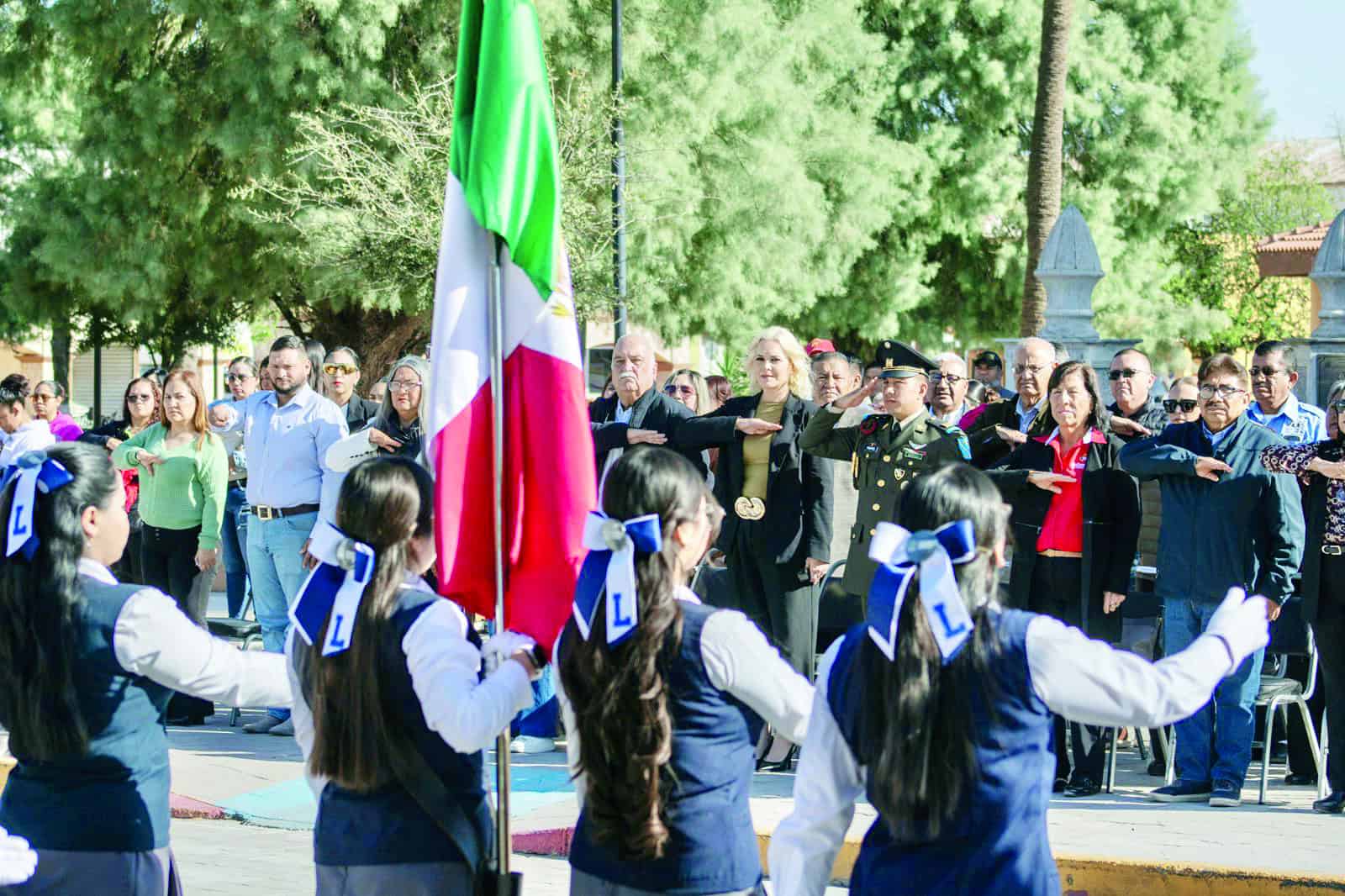 Durante dicho acto, los presentes participaron en los honores al lábaro patrio, con la escolta de la UAC "Instituto Adolfo E. Romo" que encabeza la directora Verónica Falcón. Además, entonaron el Glorioso Himno Nacional Mexicano, interpretado por la Secundaria General "Gral. Lucio Blanco" T.M, además del Himno Coahuilense, quedando el discurso oficial a cargo de la maestra Felisa Gabriela Morales de la Garza.