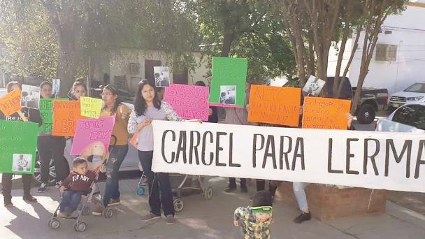 MELCHOR MÚZQUIZ, COAH.- Familiares del enfermero que fue asesinado hace ya tres meses se manifestaron en el exterior de la CANACO de esta ciudad donde el delegado de la Fiscalía General del Estado, Ulises Ramírez Guillén encabezó una reunión con empresarios de esta ciudad.