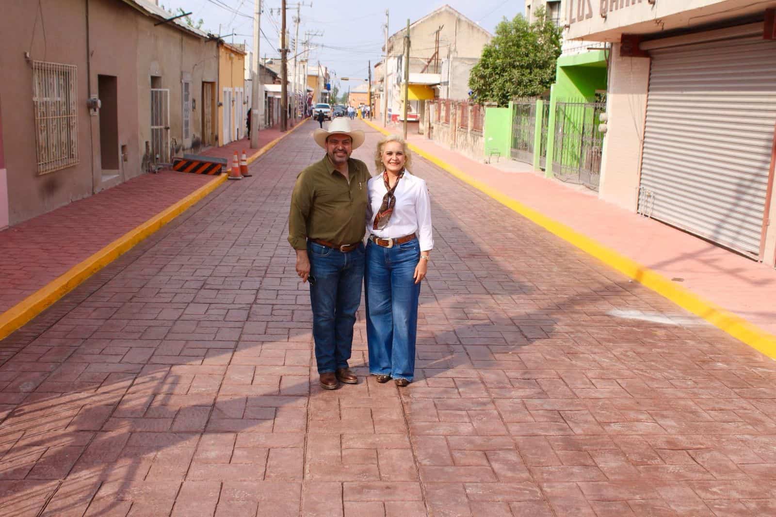 La alcaldesa Laura Jiménez Gutiérrez inauguró oficialmente la pavimentación con concreto hidráulico estampado y la instalación de banquetas con adoquín en la calle Miguel Ángel Rivera Guerrero, ubicada en el corazón del Pueblo Mágico de Múzquiz.