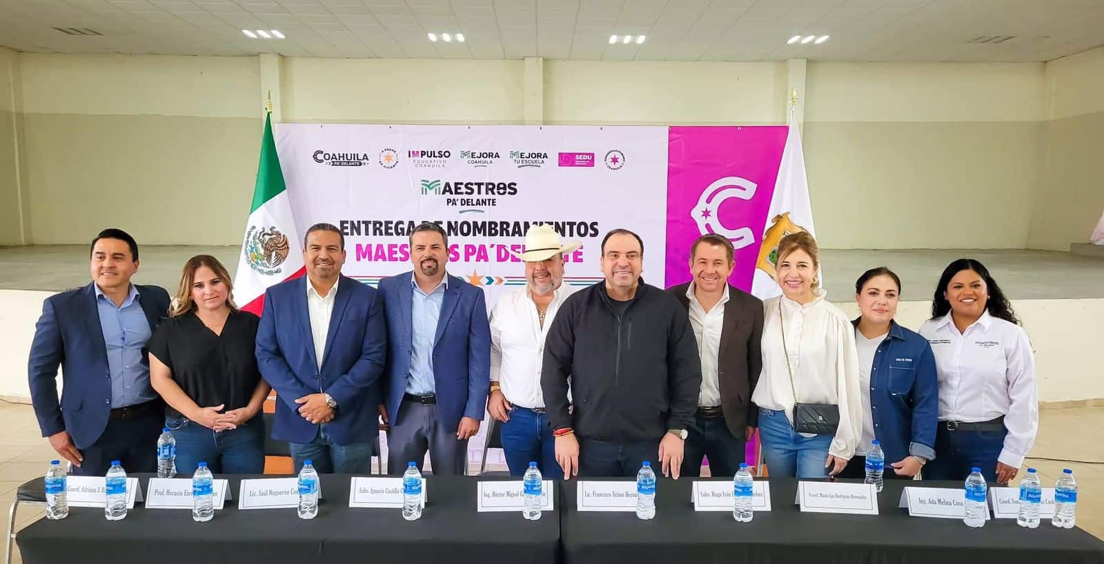MELCHOR MÚZQUIZ, COAH.- Con el objetivo de fortalecer la calidad educativa y reconocer el compromiso del magisterio, se llevó a cabo la ceremonia de Toma de Protesta y Entrega de Nombramientos del programa Maestros Pa´ Delante, en el Auditorio Municipal de Múzquiz, con la participación de autoridades estatales, regionales y municipales, así como docentes de la Región Carbonífera.