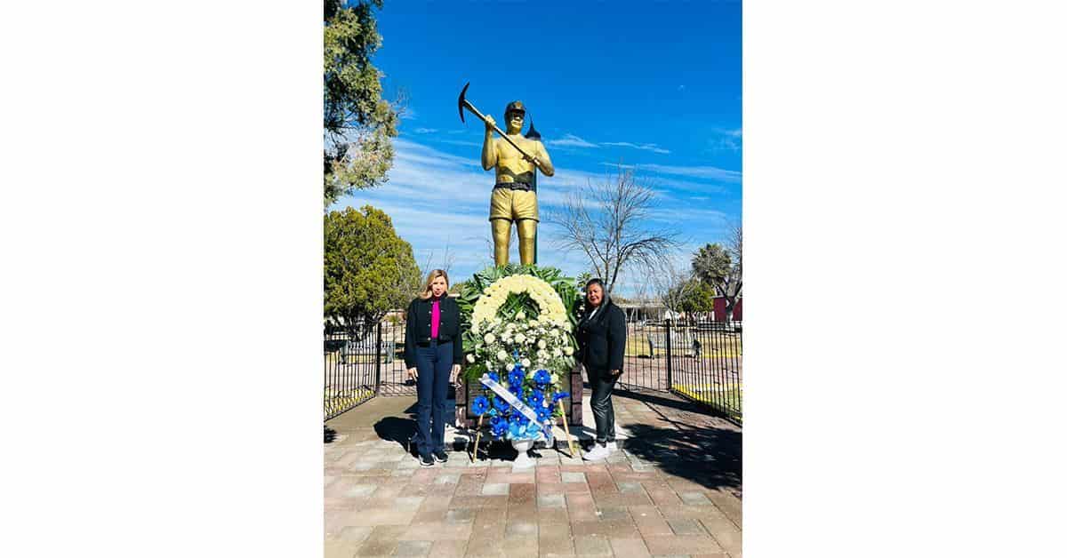La conmemoración se realizó frente al monumento erigido en honor a los mineros fallecidos, donde se colocaron ofrendas florales y se guardó un minuto de silencio.